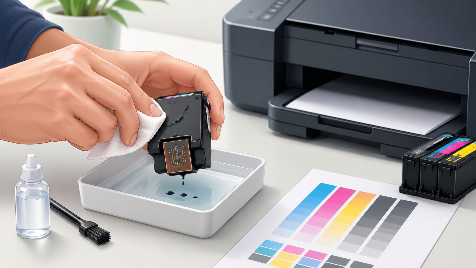 Есть простое правило: чем меньше время простоя, тем выше шанс восстановления. Я знаю, что многим хочется сразу найти «быстрый лайфхак», причем без покупки специальных средств, однако прежде необходимо определить степень засора. Если чернила высохли только на поверхности, восстановление идет легко; если пробка сидит внутри узких каналов, процесс будет дольше.